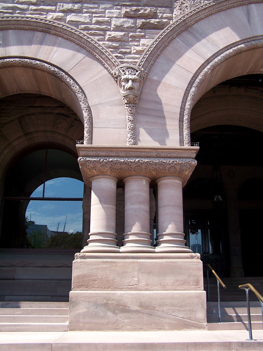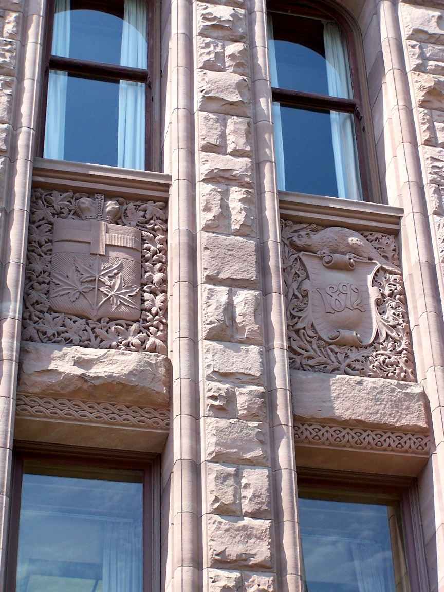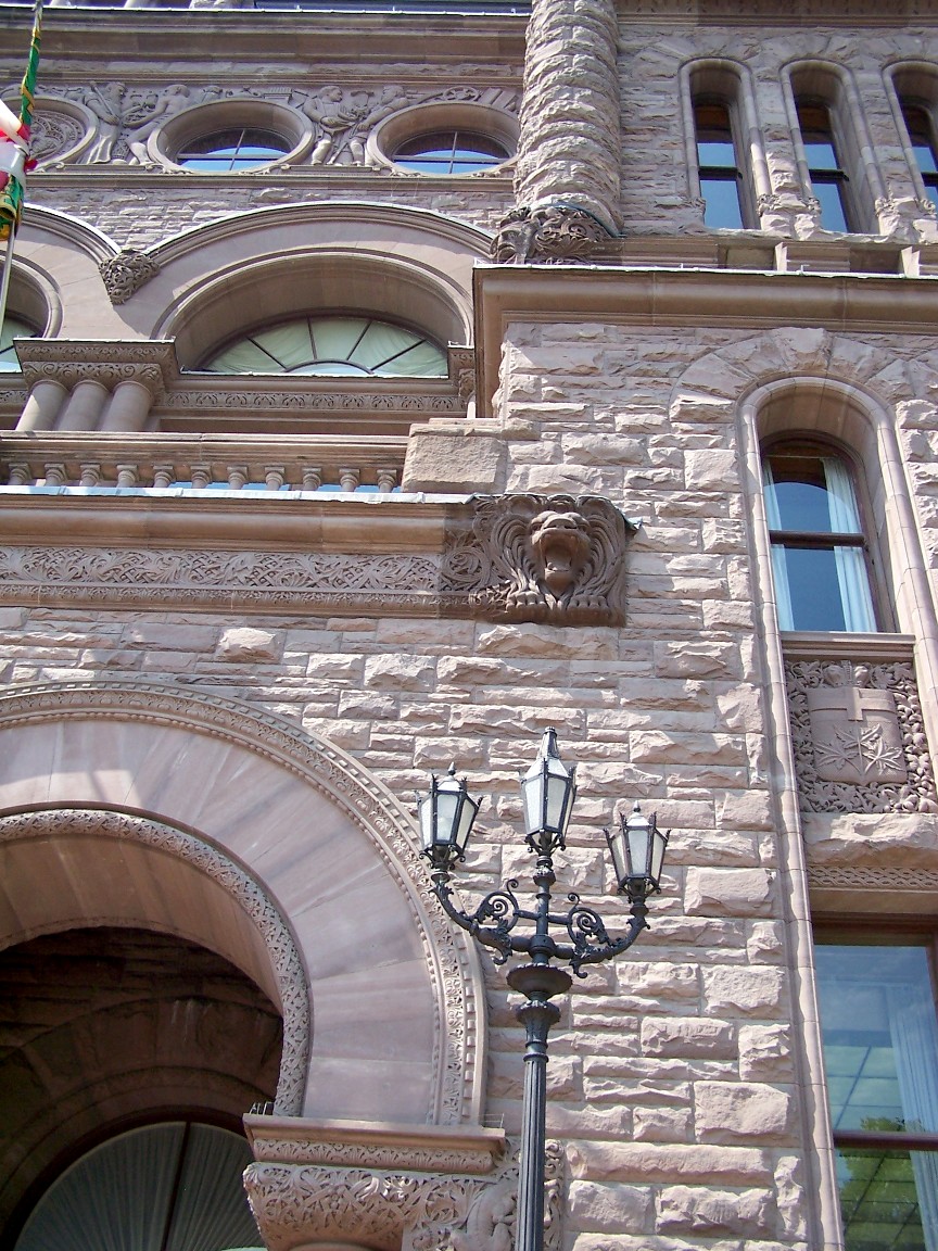 Here are pictures of the Parliament Building at Queen's Park. The sandstone structure, erected 1886-92, has served as the meeting place for Ontario's Parliament for more than a century. The details in this one building are beautiful! Enjoy! Click the pictures to see the larger versions...